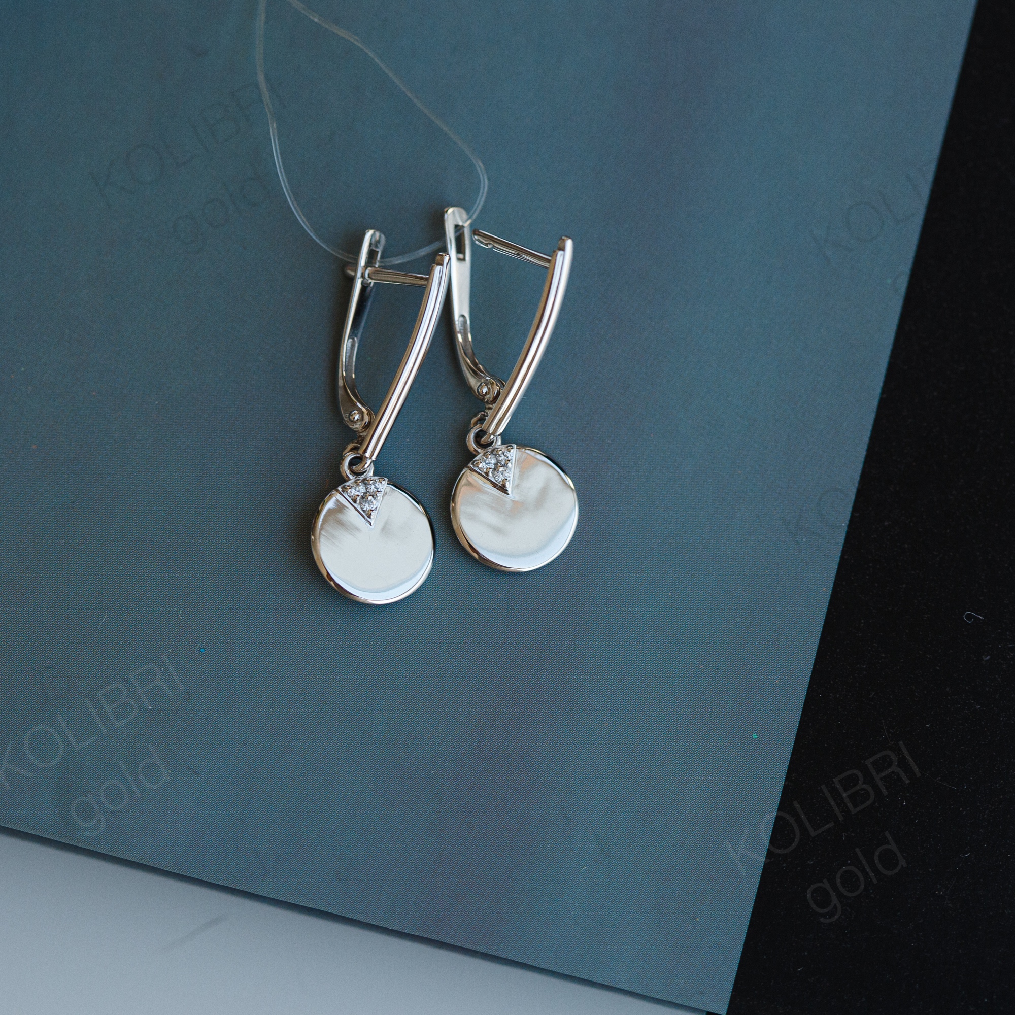 Серьги из белого золота с фианитом ДИНАСТИЯ 019852-3101