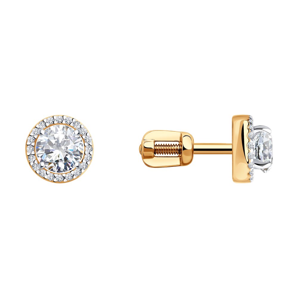 Золотые серьги пусеты-гвоздики с фианитом SOKOLOV 025890
