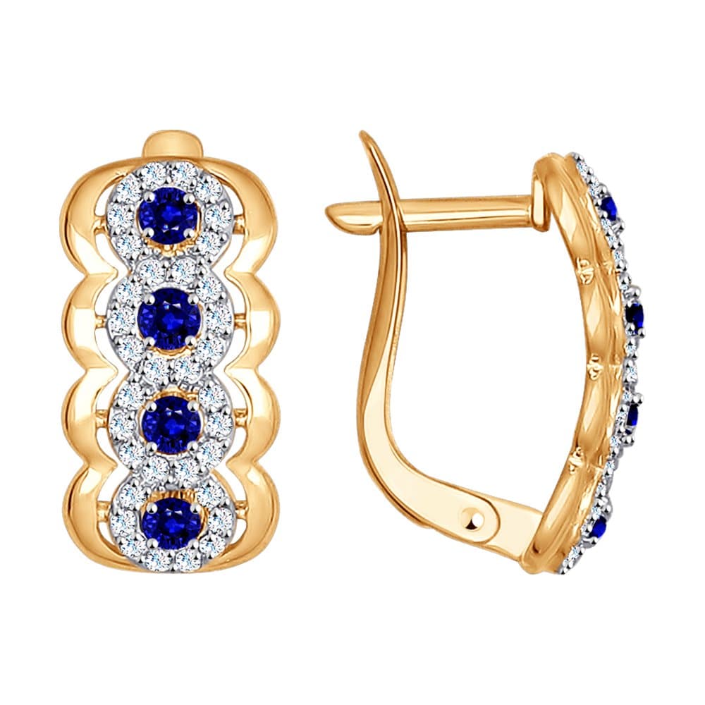 Золотые серьги с сапфиром гидротермальным и фианитом SOKOLOV 027543