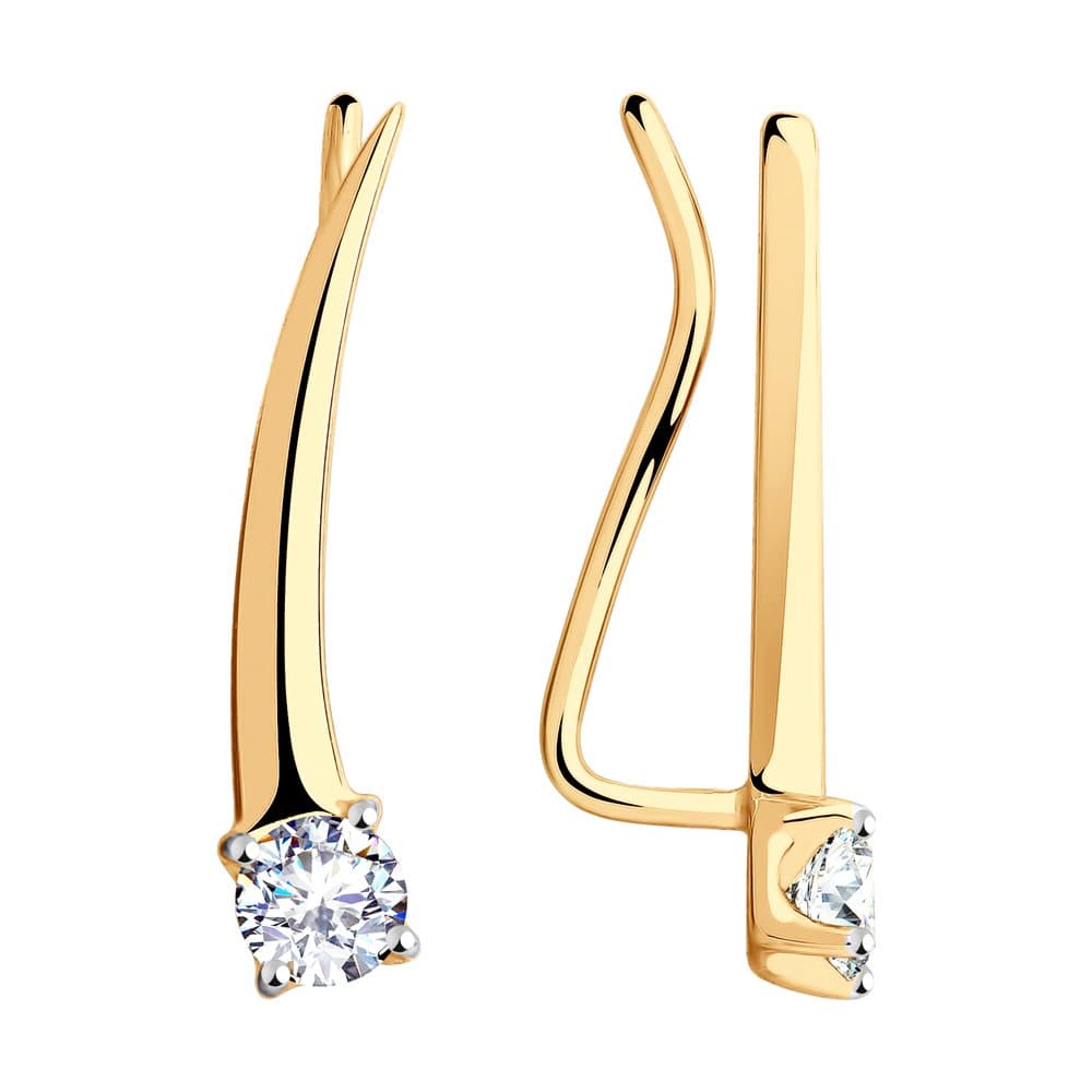 Золотые серьги зажимы с фианитом SOKOLOV 028615
