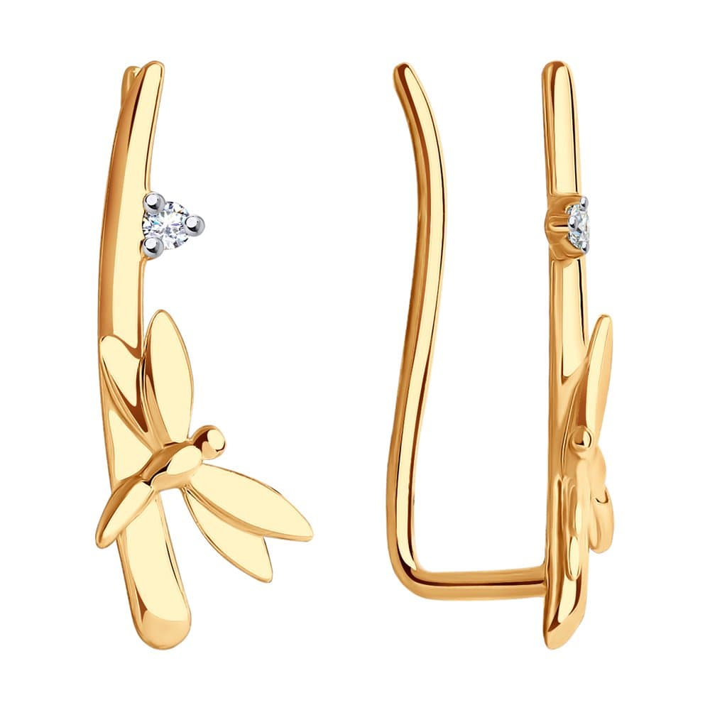 Золотые серьги зажимы с фианитом SOKOLOV 029274
