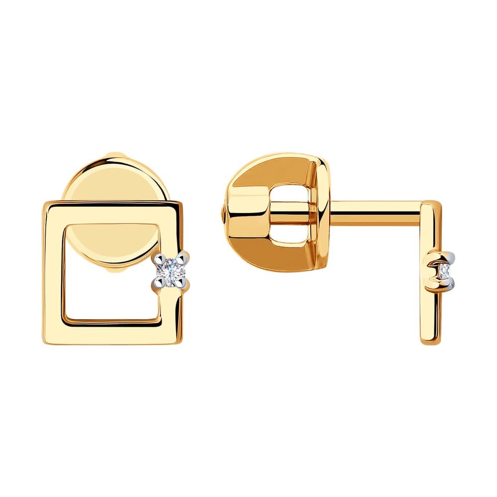 Золотые серьги пусеты-гвоздики с фианитом SOKOLOV 029448