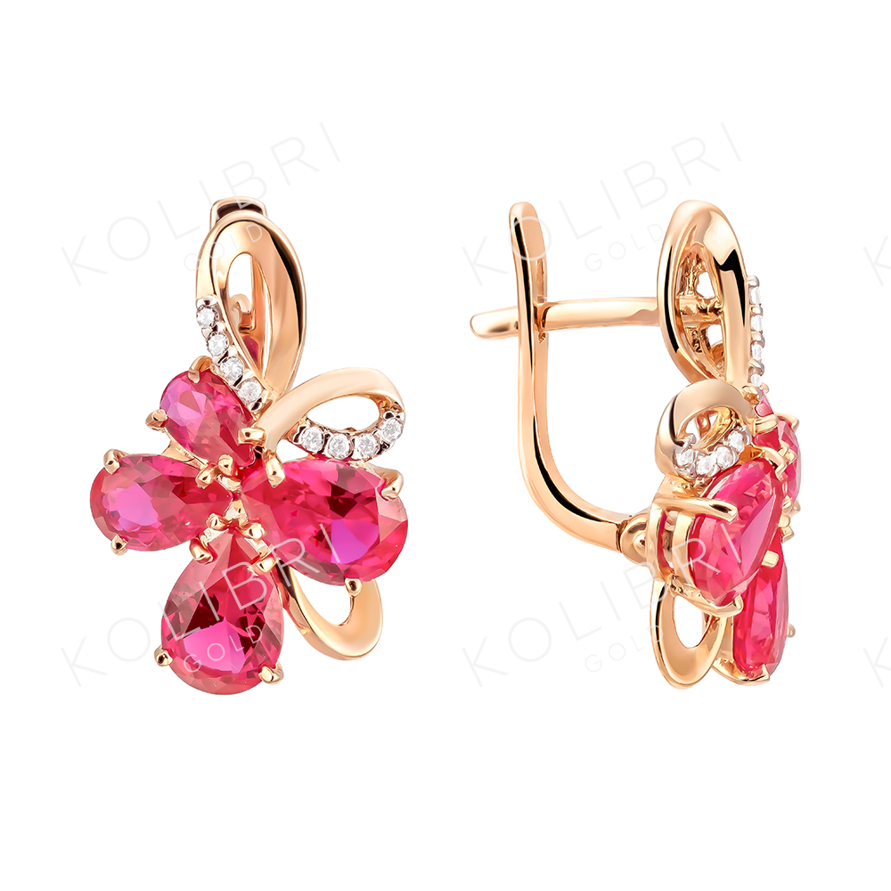 Золотые серьги с рубиновым корундом и фианитом МАСТЕР БРИЛЛИАНТ 02-1-645-1601-011