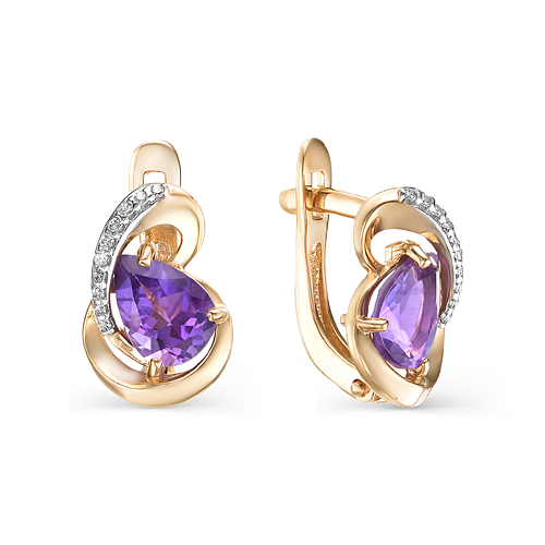 Золотые серьги с аметистом и фианитом МАСТЕР БРИЛЛИАНТ 02-1-748-0201-011