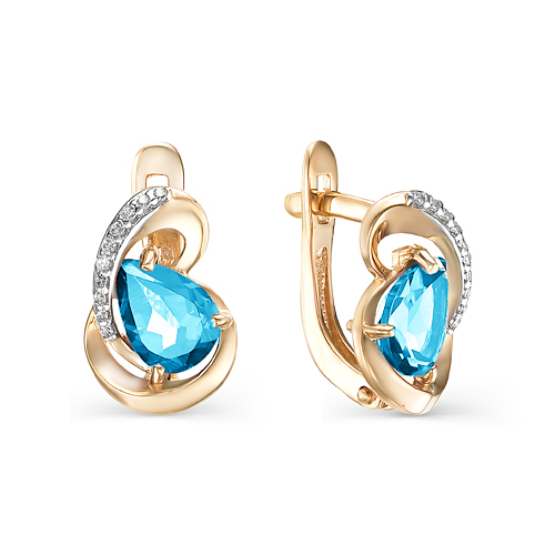 Золотые серьги с топазом и фианитом МАСТЕР БРИЛЛИАНТ 02-1-748-1301-011
