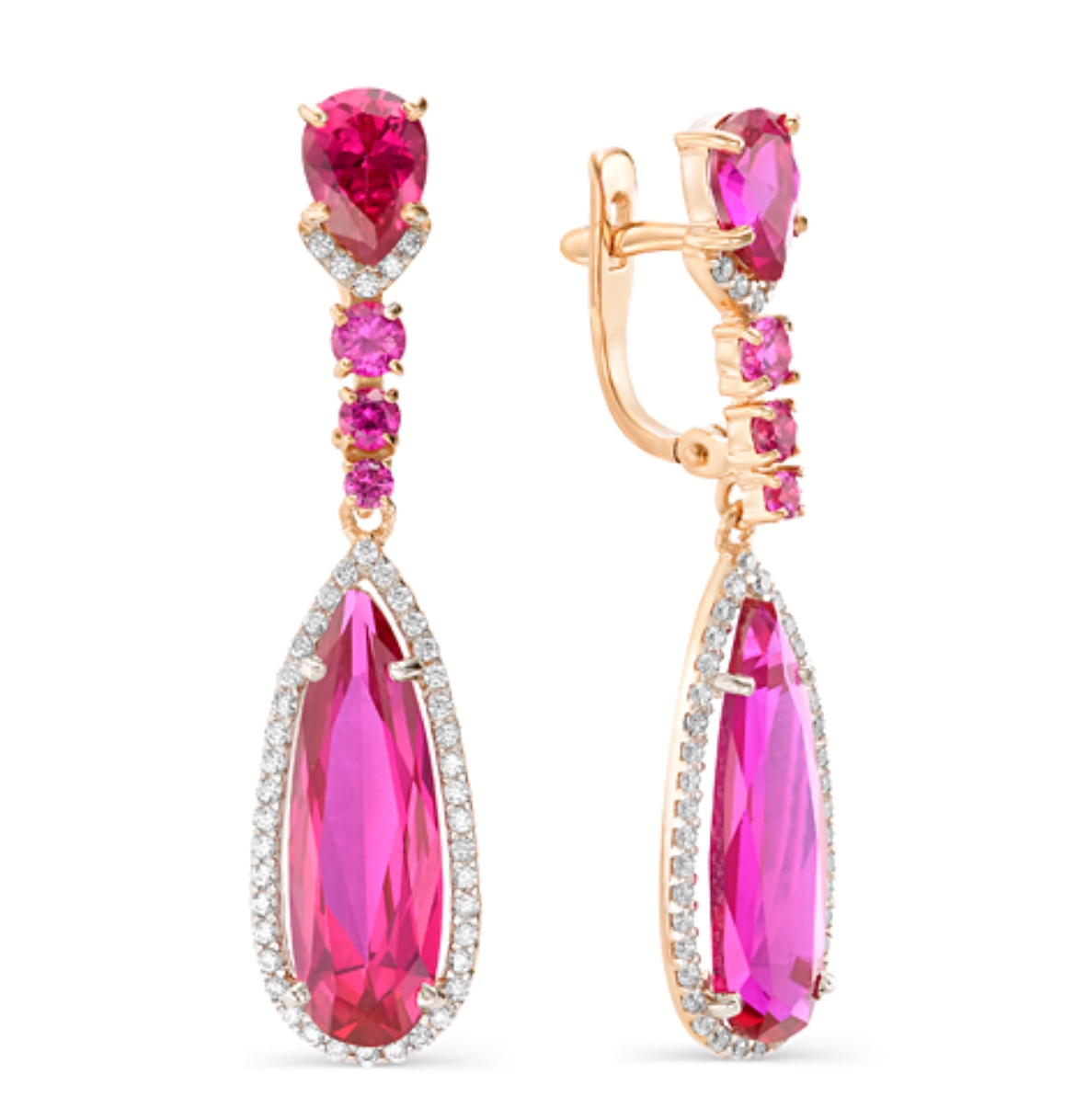 Золотые длинные серьги с рубиновым корундом и фианитом МАСТЕР БРИЛЛИАНТ 02-1-824-1601-011
