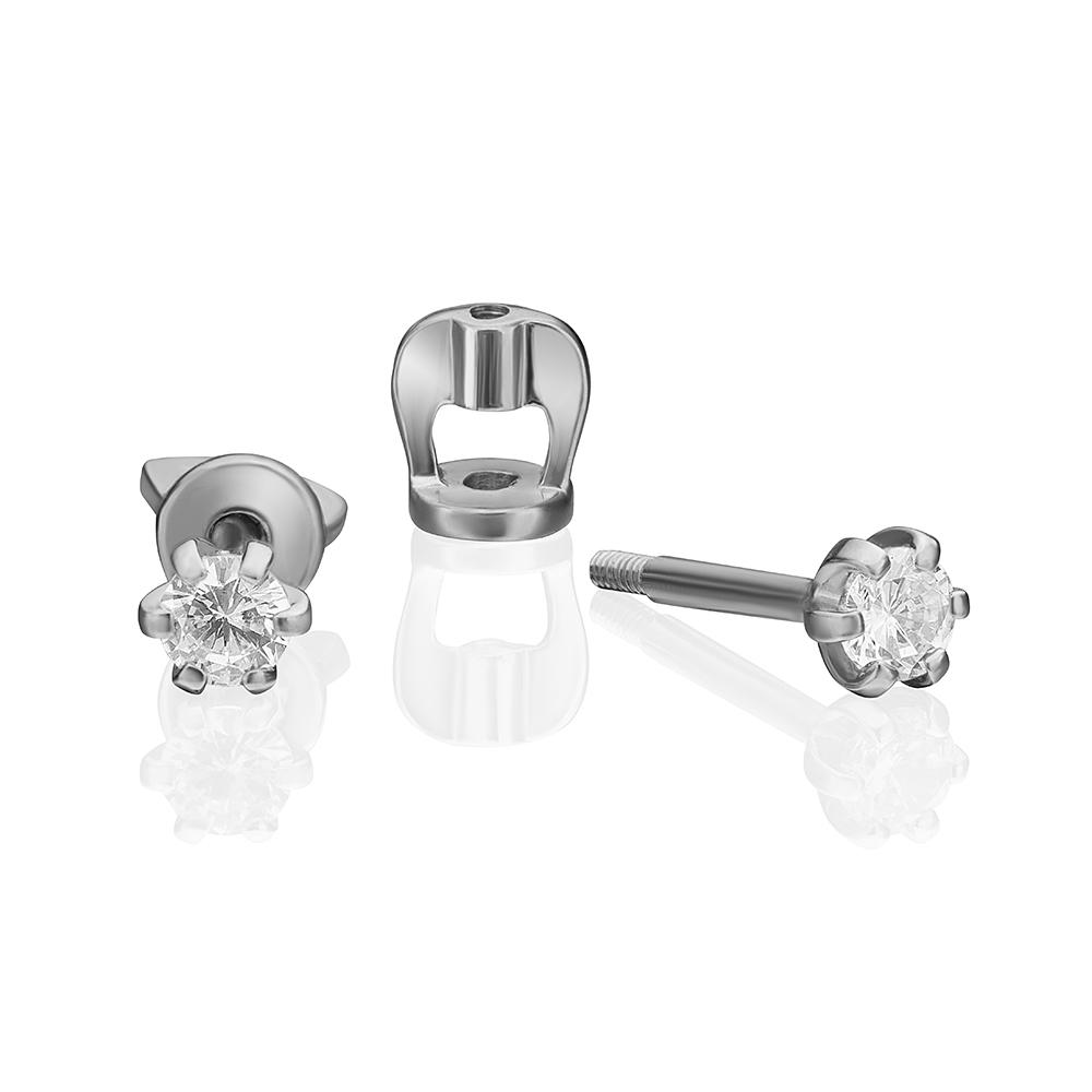 Серьги пусеты-гвоздики из белого золота с фианитом ПЛАТИНА 02-2055-00-401-1120-03