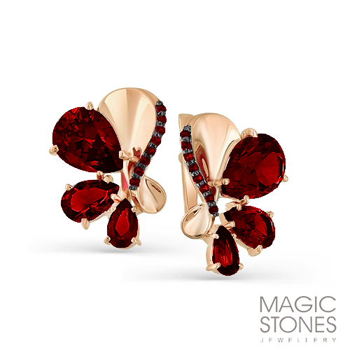Золотые серьги с гранатом и фианитом МАСТЕР БРИЛЛИАНТ 02-2-296-0303-012
