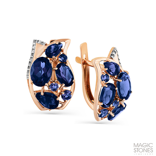 Золотые серьги с сапфиром гидротермальным и фианитом МАСТЕР БРИЛЛИАНТ 02-2-482-1501-011
