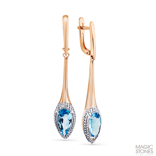 Золотые серьги с топазом и фианитом МАСТЕР БРИЛЛИАНТ 02-2-613-1301-011