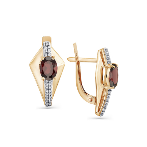 Золотые серьги с гранатом и фианитом МАСТЕР БРИЛЛИАНТ 02-2-621-0301-011