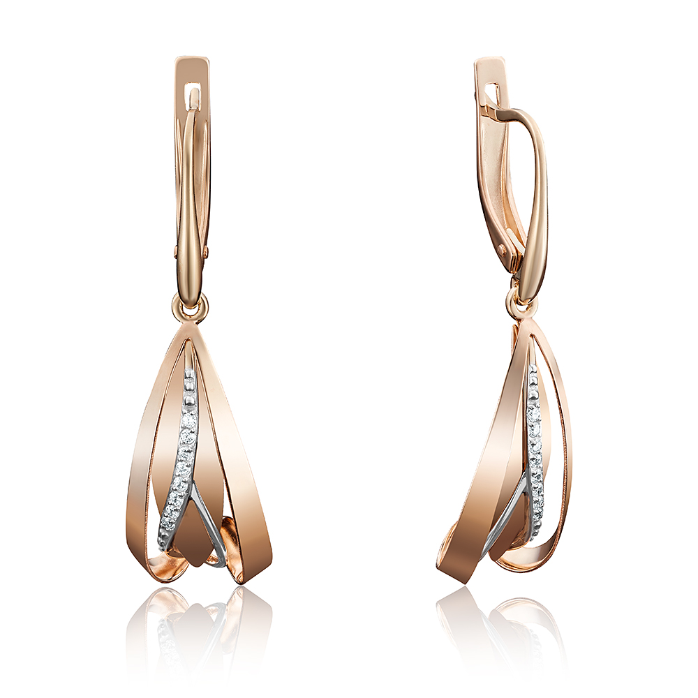 Золотые длинные серьги с фианитом ПЛАТИНА 02-3953-00-401-1110-48