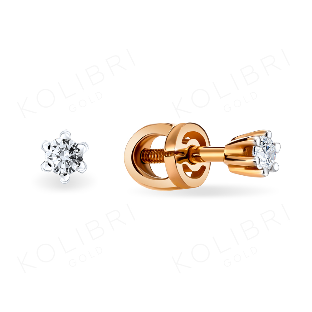 Золотые серьги пусеты-гвоздики с бриллиантом АЛЕКСАНДРА 1020112