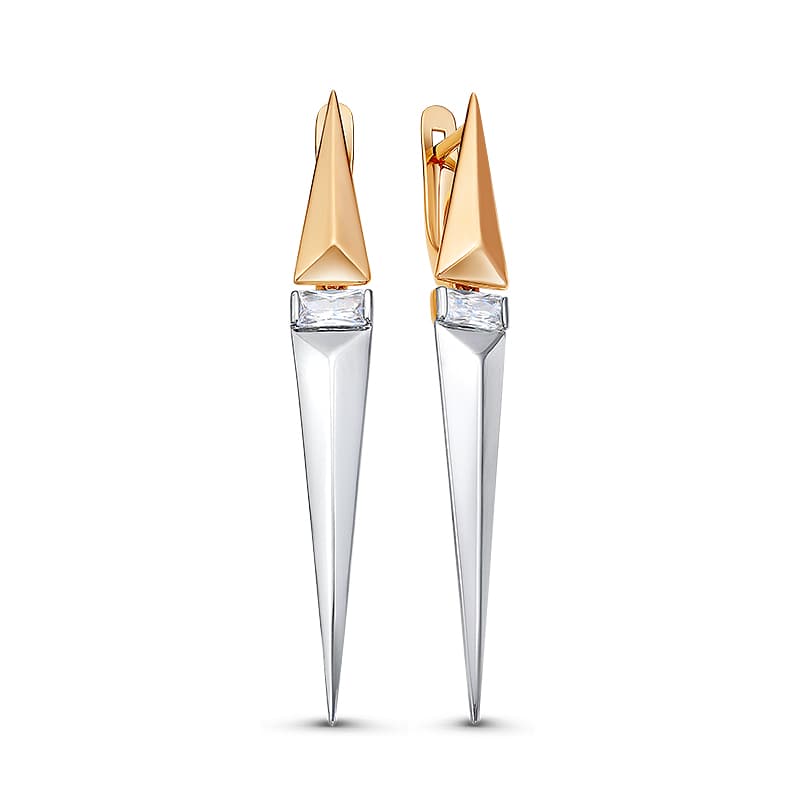 Золотые длинные серьги с фианитом DEL'TA 1200706