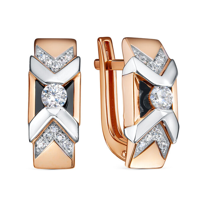Золотые серьги с ониксом и фианитом BERGER 121111