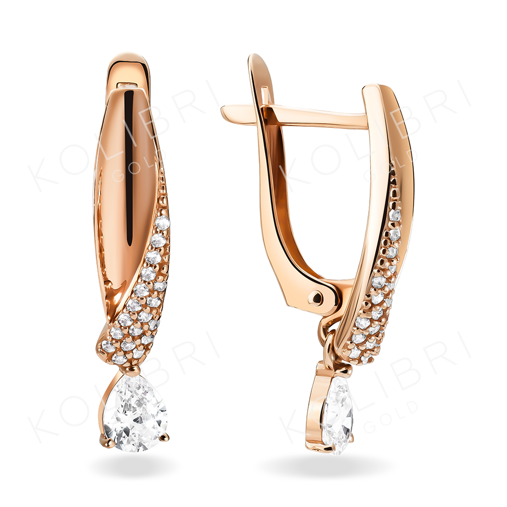 Золотые серьги с фианитом ВЫСТАВКА 14-00-0001-26177