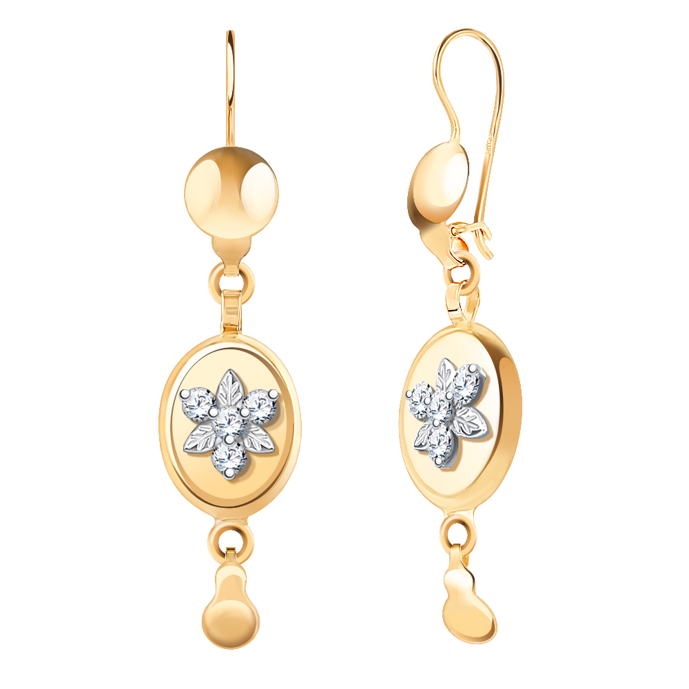 Золотые длинные серьги с фианитом АТОЛЛ 20181