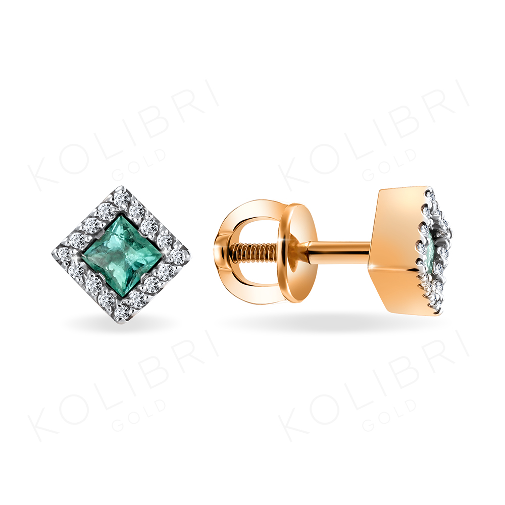 Золотые серьги пусеты-гвоздики с бриллиантом и изумрудом АЛЕКСАНДРА 2020510
