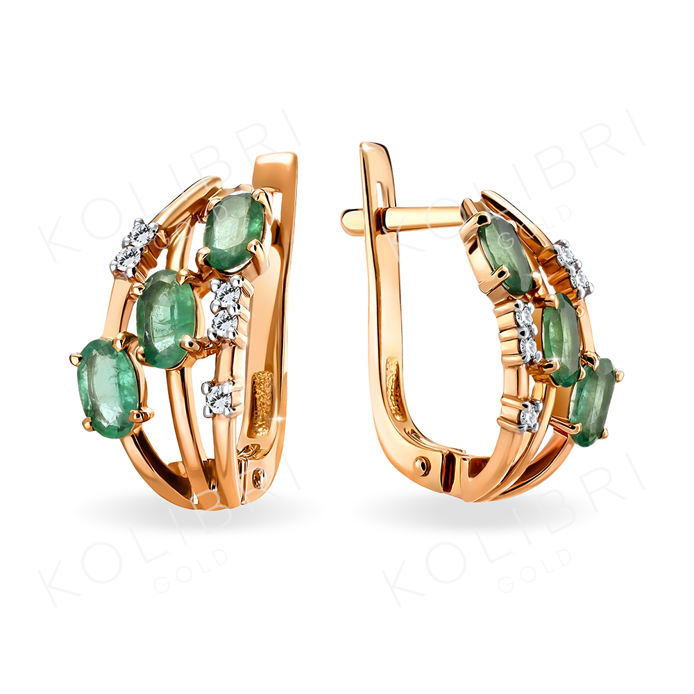 Золотые серьги с бриллиантом и изумрудом АЛЕКСАНДРА 2020728