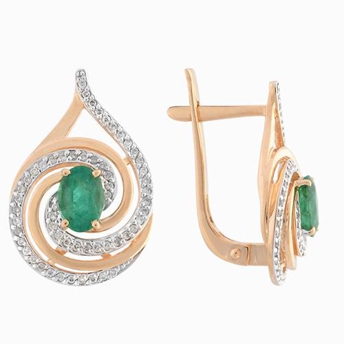 Золотые серьги с бриллиантом и изумрудом АЛЕКСАНДРА 2020836