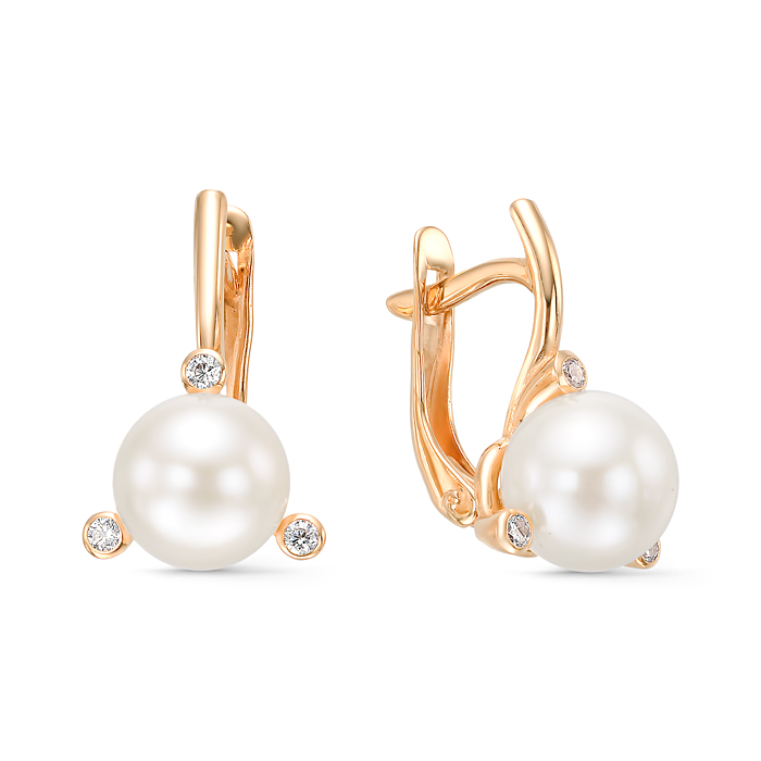 Золотые серьги с жемчугом и фианитом DEFLEUR 22043A1