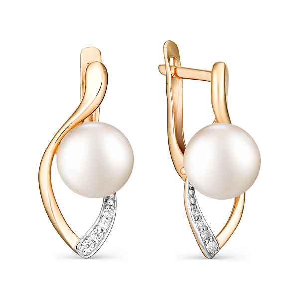 Золотые серьги с жемчугом и фианитом DEFLEUR 22125A1