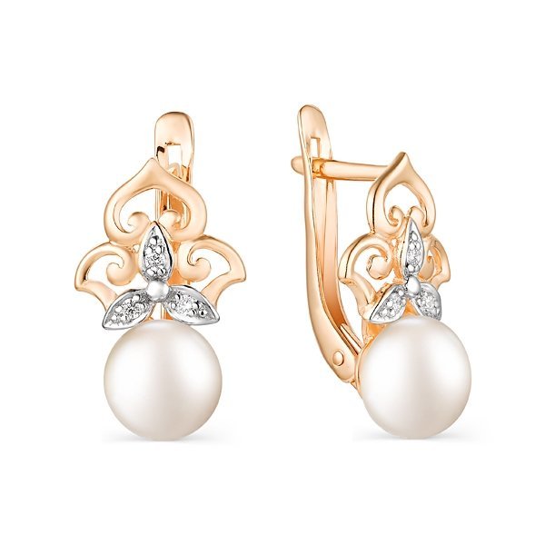 Золотые серьги с жемчугом и фианитом DEFLEUR 22143A1
