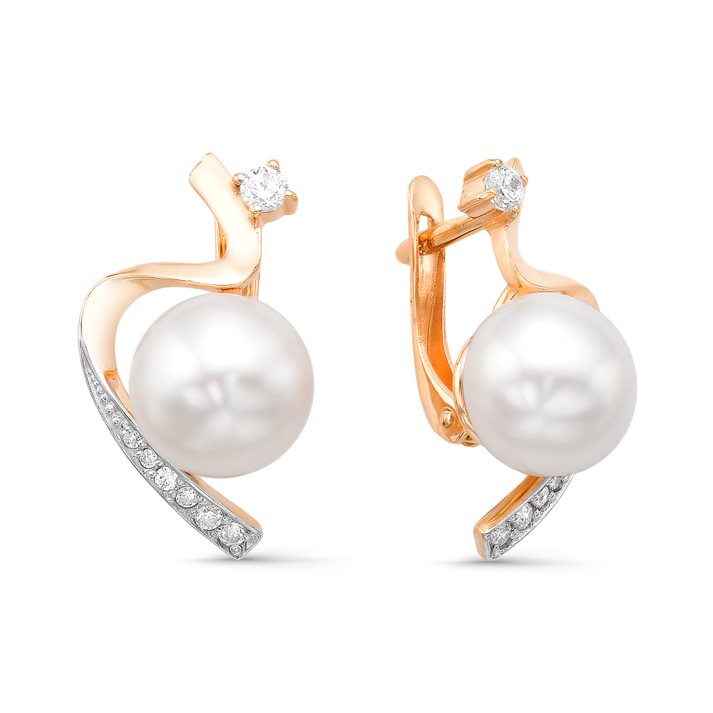 Золотые серьги с жемчугом и фианитом DEFLEUR 22172A1