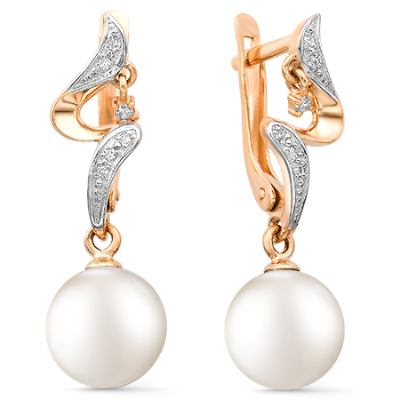 Золотые серьги с жемчугом и фианитом DEFLEUR 22401A1