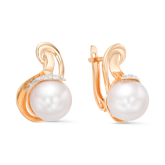 Золотые серьги с жемчугом и фианитом DEFLEUR 22419A1
