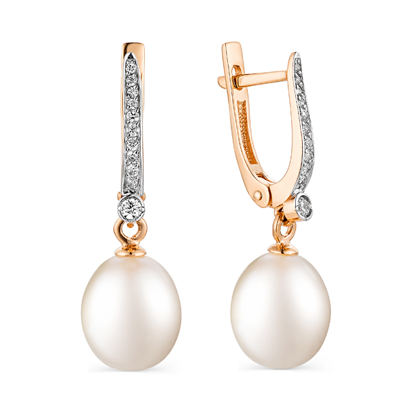 Золотые серьги с жемчугом и фианитом DEFLEUR 22439A1