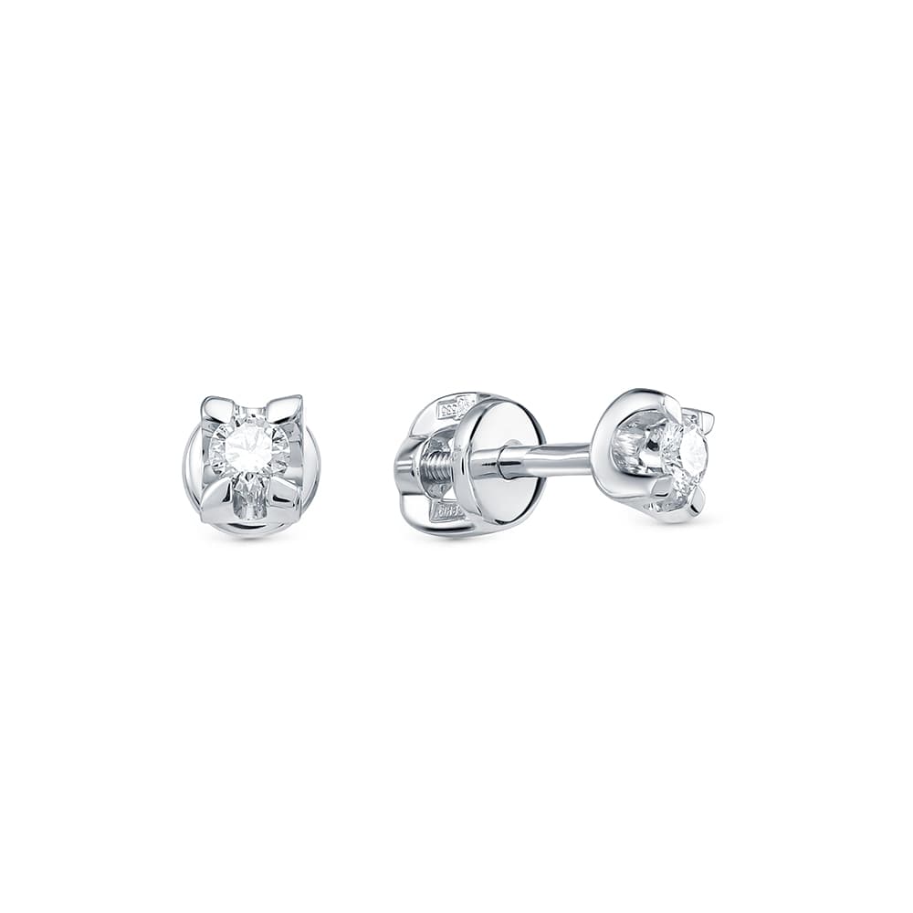 Серьги пусеты-гвоздики из белого золота с бриллиантом ЛЕТО 244-6200