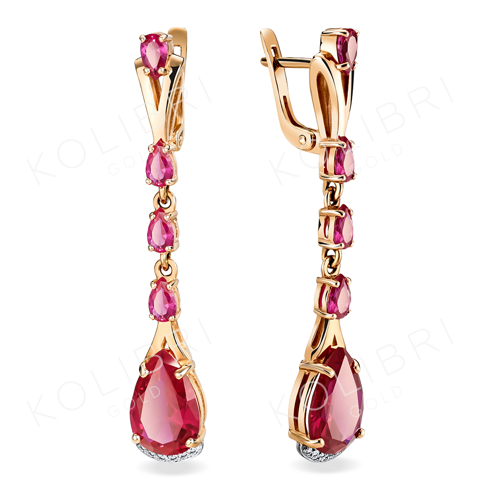 Золотые длинные серьги с рубиновым корундом и фианитом БОЛЬШАКОВ 2-323