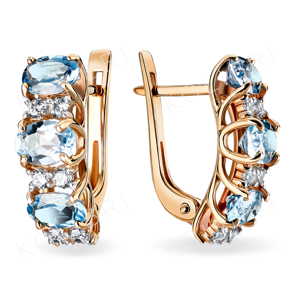 Золотые серьги с топазом и фианитом БОЛЬШАКОВ 2-668