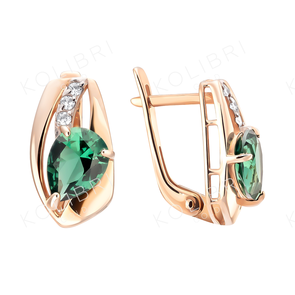 Золотые серьги с изумрудом гидротермальным и фианитом БОЛЬШАКОВ 2-733