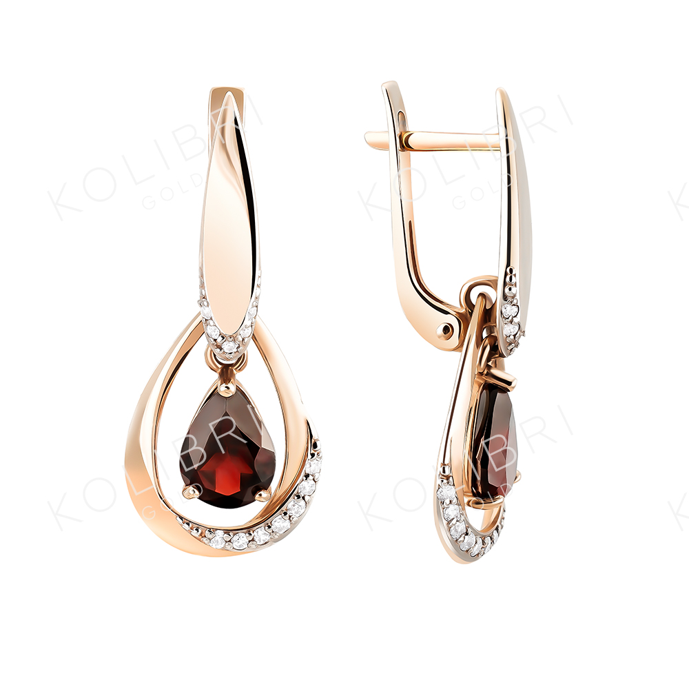 Золотые серьги с гранатом и фианитом БОЛЬШАКОВ 2-760г