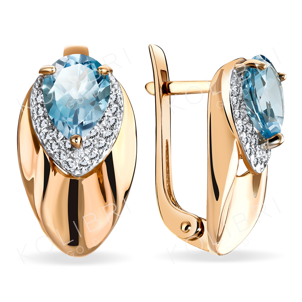 Золотые серьги с топазом и фианитом БОЛЬШАКОВ 2-776