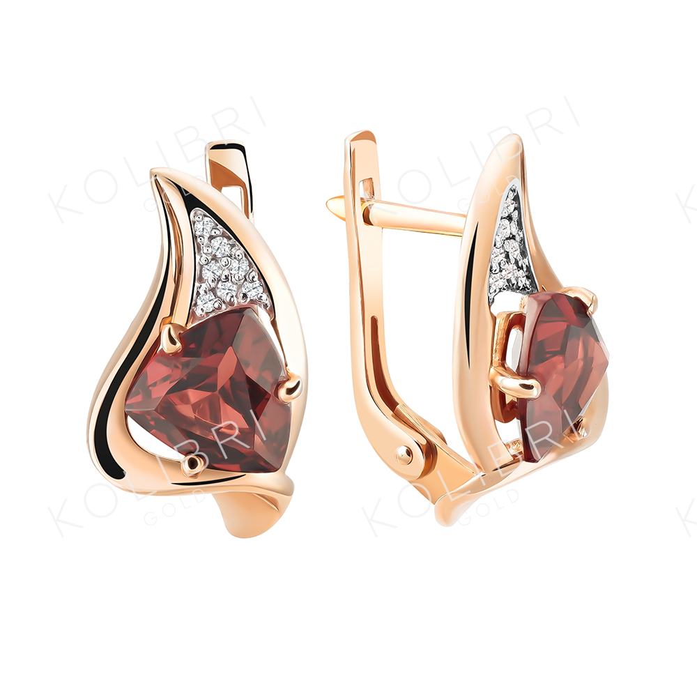 Золотые серьги с гранатом и фианитом БОЛЬШАКОВ 2-803