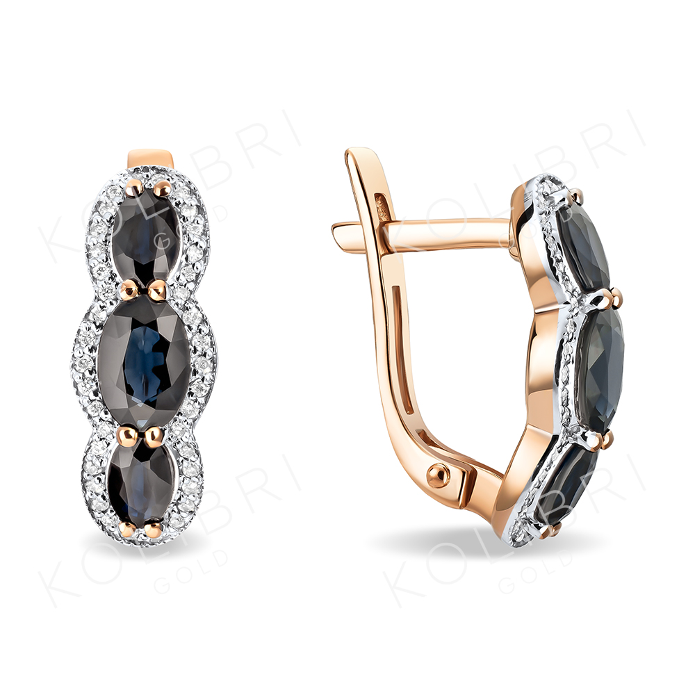 Золотые серьги с бриллиантом и сапфиром АЛЕКСАНДРА 3020832
