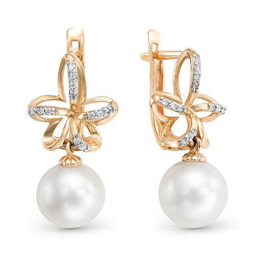 Золотые серьги с жемчугом и фианитом DEFLEUR 32057A1