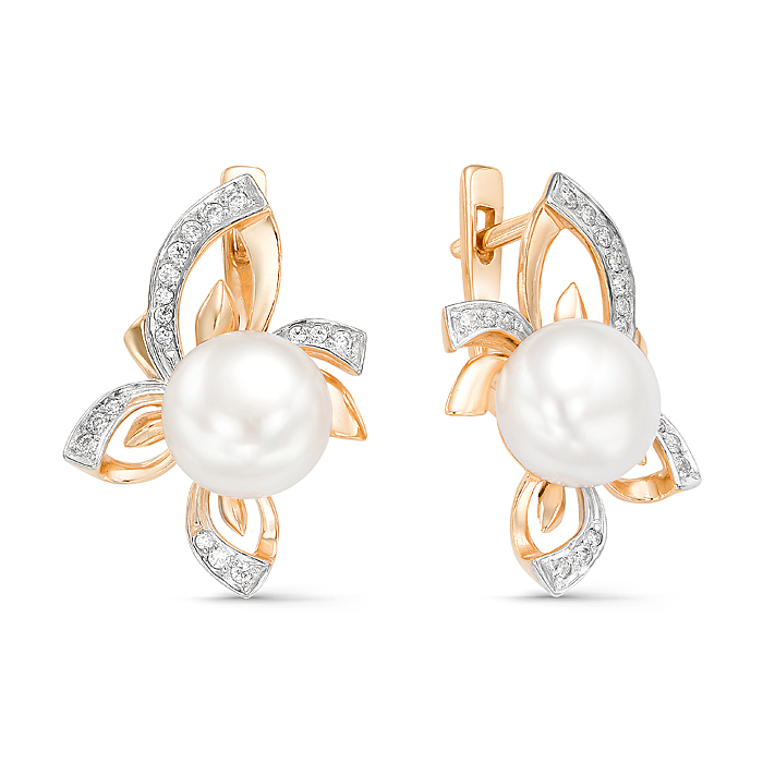 Золотые серьги с жемчугом и фианитом DEFLEUR 32156A1