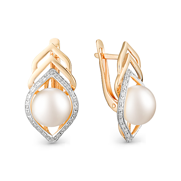 Золотые серьги с жемчугом и фианитом DEFLEUR 32213A1