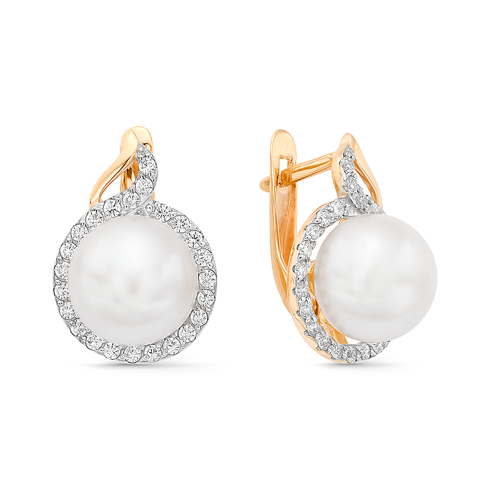 Золотые серьги с жемчугом и фианитом DEFLEUR 32301A1