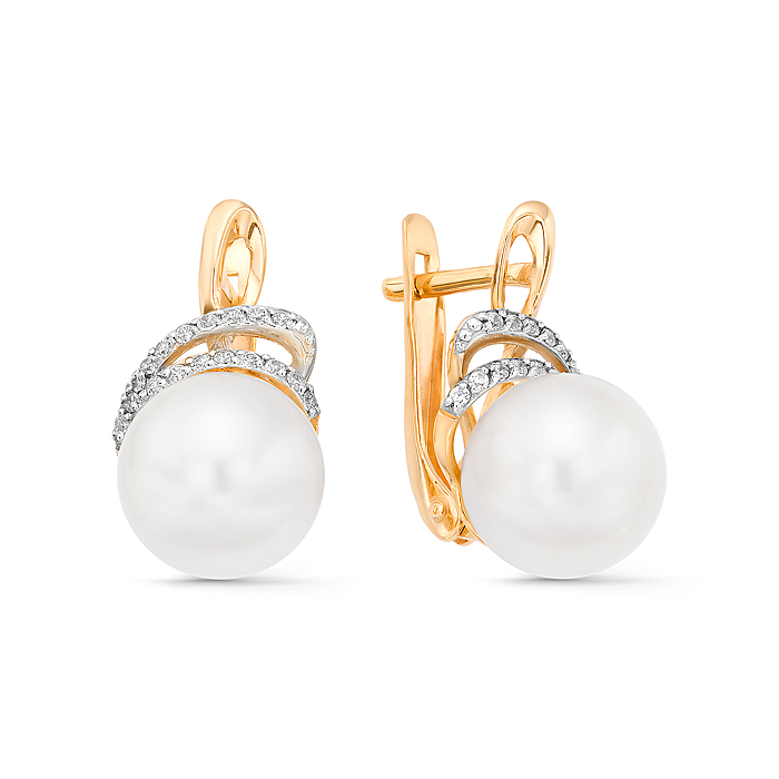Золотые серьги с жемчугом и фианитом DEFLEUR 32307A1