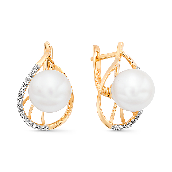 Золотые серьги с жемчугом и фианитом DEFLEUR 32325A1