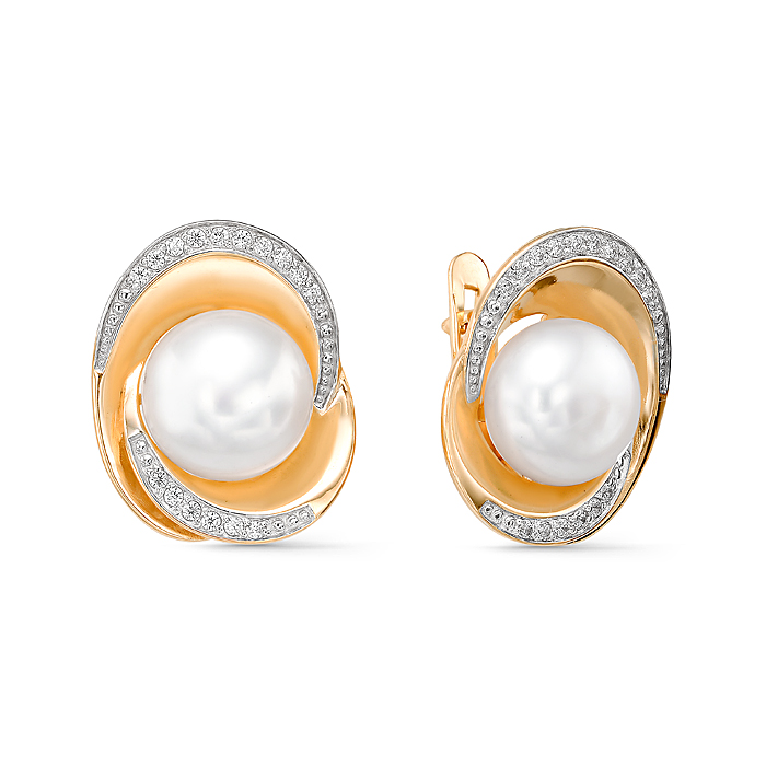 Золотые серьги с жемчугом и фианитом DEFLEUR 32381A1