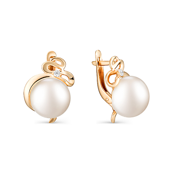 Золотые серьги с жемчугом и фианитом DEFLEUR 32399A1