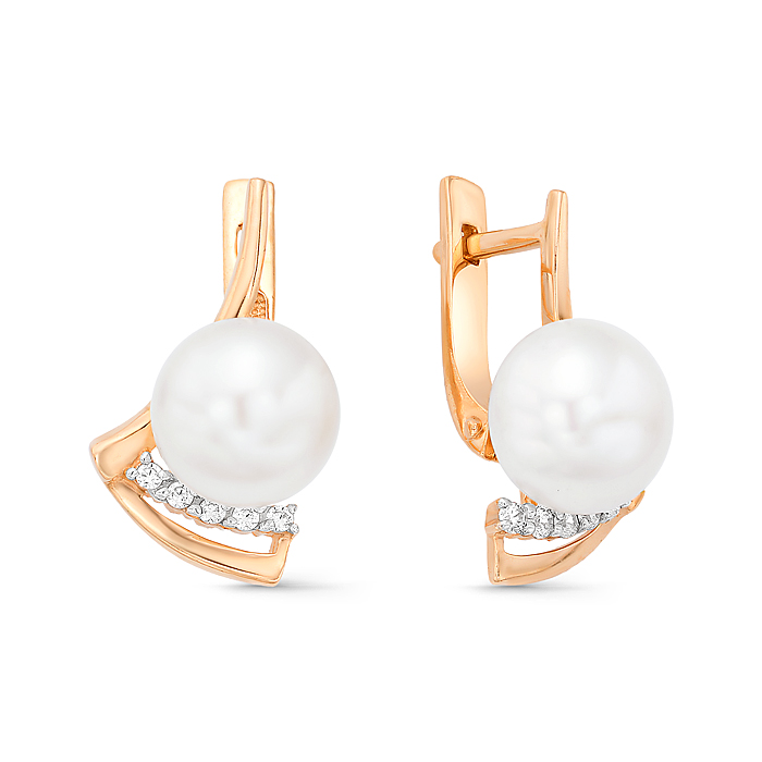 Золотые серьги с жемчугом и фианитом DEFLEUR 32404A1