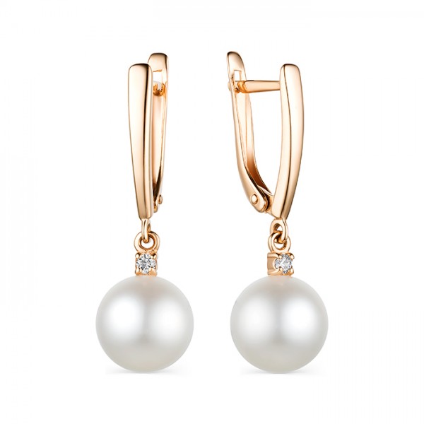 Золотые серьги с жемчугом и фианитом DEFLEUR 32609AP1