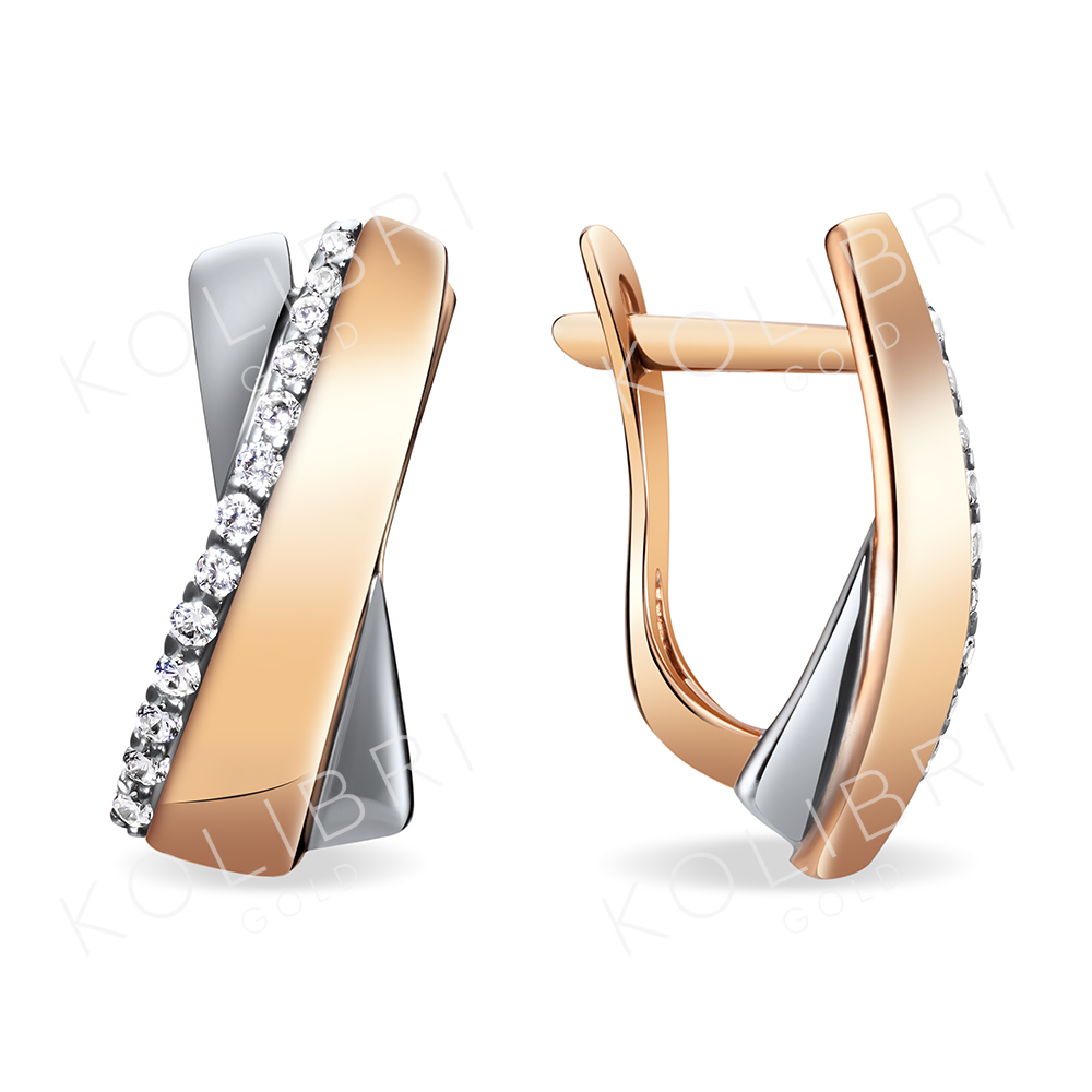 Золотые серьги с фианитом ВЫСТАВКА 3675